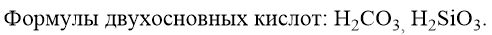Выберите формулы двухосновных кислот: H2CO3, Fe(OH)2, NaOH, HCl, H2SiO3, CaO