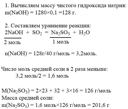 Пж, помагите с химией! через 1280г 10% раствора гидроксида натрия пропускают сернистый газ. Сколько граммов средней соли получится?