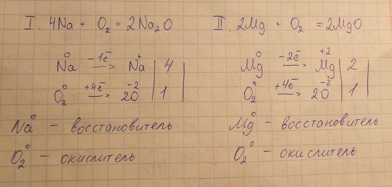 Напишите реакции окисления Na + O2 = Na2o, Mg + O2 = Mgo