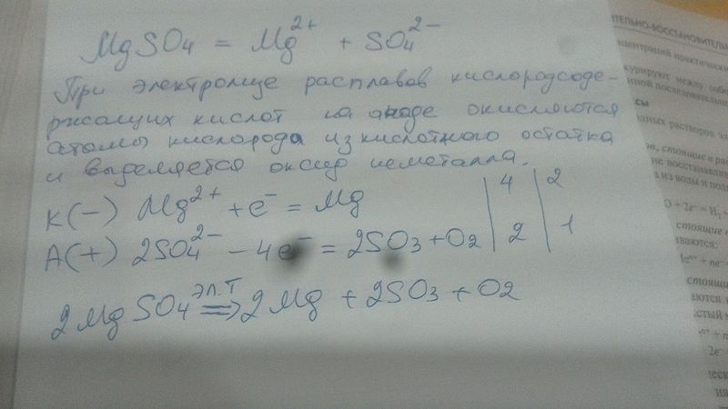 Напишите ЭЛЕКТРОЛИЗ р-ра MgSO4