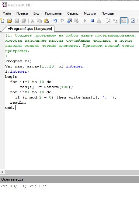 1.. Создать программу на любом языке программирования, которая заполняет массив случайными числами, а потом выводит только четные элементы. Привести полный текст программы. 2. Создать программу на любом языке программирования, которая получает два числа от пользователя и выводит их сумму. Суммирование должно быть реализовано с помощью процедуры. Привести полный текст программы.