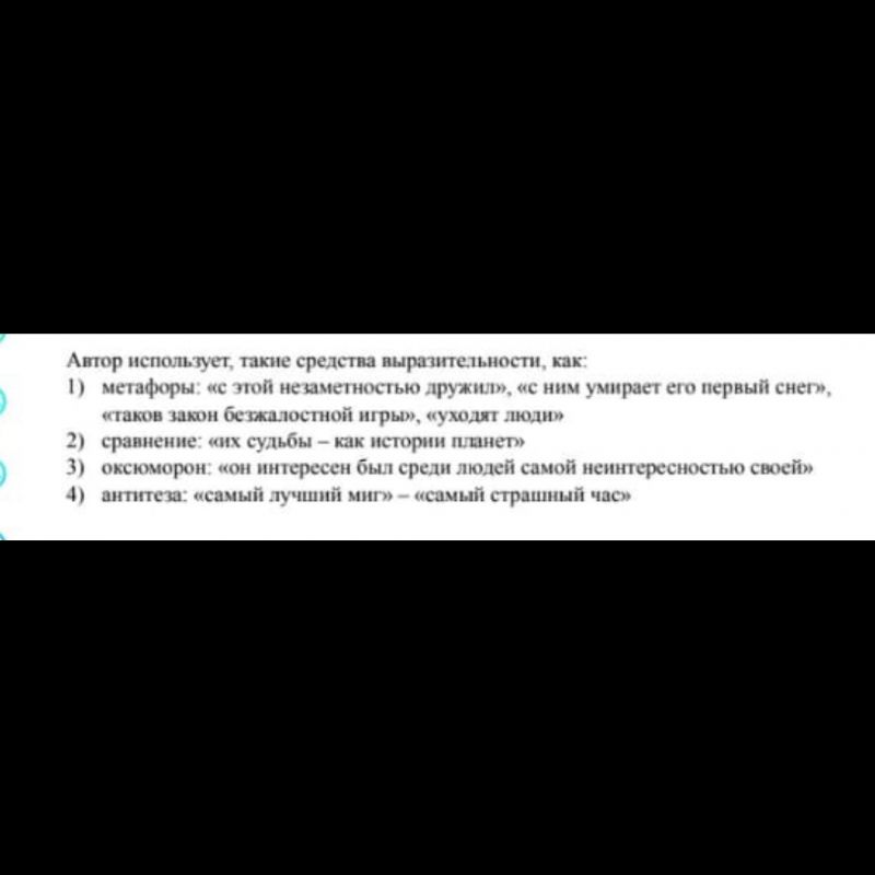 Художественные средства выразительности в стихотворении Евтушенко "Людей неинтересных в мире нет"Людей неинтересных в мире нет.Их судьбы — как истории планет.У каждой все особое, свое,и нет планет, похожих на нее.А если кто-то незаметно жили с этой незаметностью дружил,он интересен был среди людейсамой неинтересностью своей.У каждого — свой тайный личный мир.Есть в мире этом самый лучший миг.Есть в мире этом самый страшный час,но это все неведомо для нас.И если умирает человек,с ним умирает первый его снег,и первый поцелуй, и первый бой…Все это забирает он с собой.Да, остаются книги и мосты,машины и художников холсты,да, многому остаться суждено,но что-то ведь уходит все равно!Таков закон безжалостной игры.Не люди умирают, а миры.Людей мы помним, грешных и земных.А что мы знали, в сущности, о них?Что знаем мы про братьев, про друзей,что знаем о единственной своей?И про отца родного своегомы, зная все, не знаем ничего.Уходят люди… Их не возвратить.Их тайные миры не возродить.И каждый раз мне хочется опятьот этой невозвратности кричать.