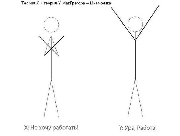 В основу теории Д. МакГрегора лежат два основных принципа, которые влияют на поведение людей: теория «х» и «у». Они совсем противоположны друг другу. В теории «х» человек не берет на себя инициативы, он не берет на себя ответственность, избегает работы. В