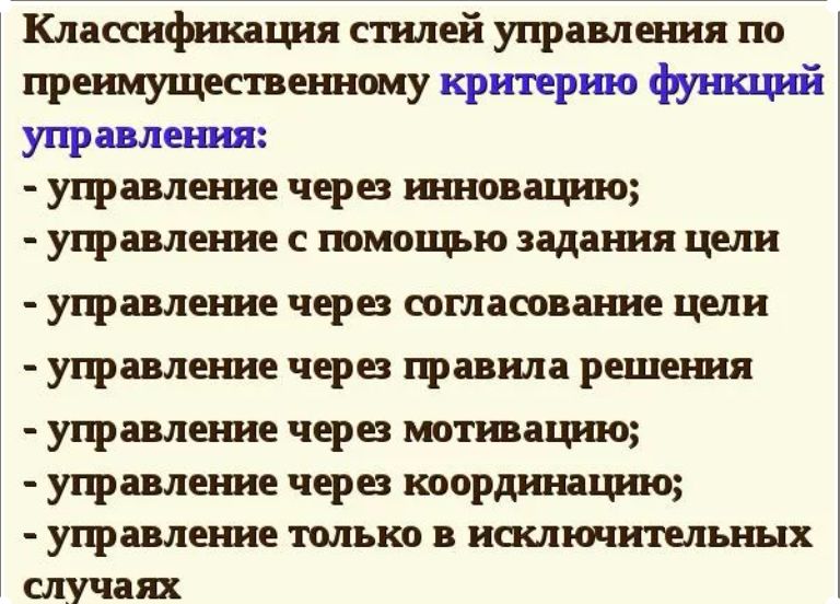 Перечислите классификацию стилей управления по преимущественному критерию.