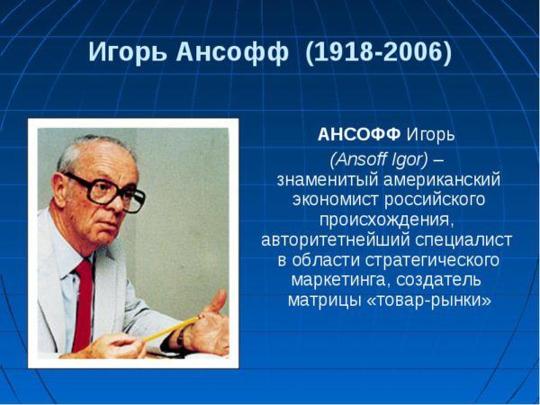 У истоков стратегического управления стоял крупный американский ученый, российского происхождения И. Ансофф.