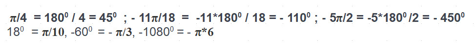 Выразите в радиантах угол: 18*, -60*, -1080*