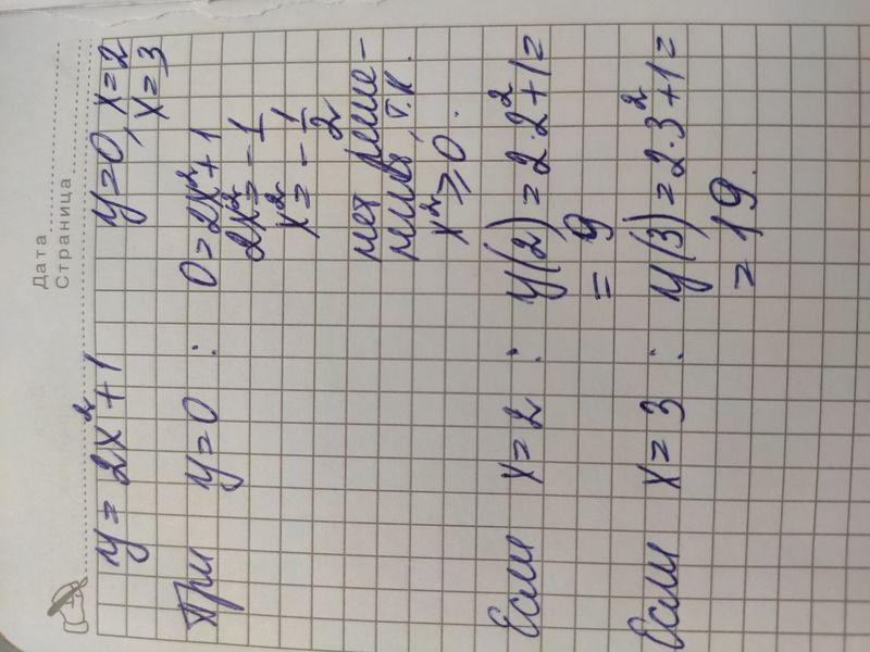 Сколько будет (Алгебра) y=2x^2+1,y=0,x=2,x=3