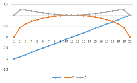 у2=1-х2; р=у-у2+1;