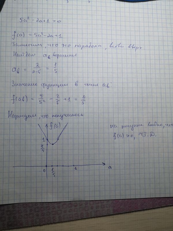 Докажите, что при любом значении а верно неравенство 5a^2-2a+1>0