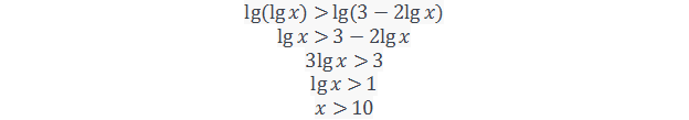 Задание по математике Решить неравенство: lg(lg x)>lg(3 - 2 lg x)