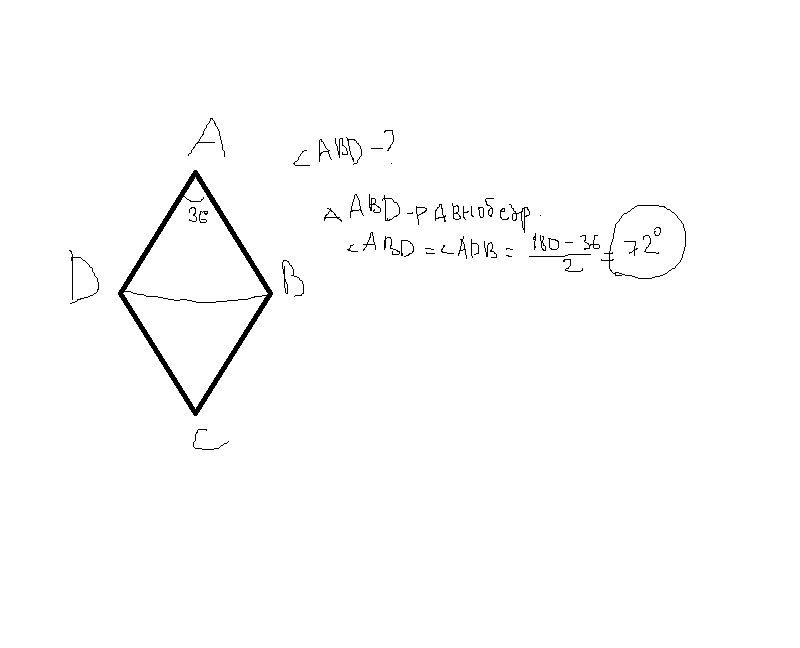 В ромбе АВСD угол BAD равен36°. Найдите угол АВD.Ответ в градусах В ромбе АВСD угол BAD равен36°. Найдите угол АВD.Ответ в градусах