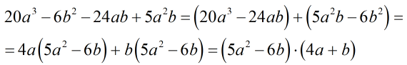 Разложите многочлен на множители: 20a^3 - 6b^2 - 24ab + 5a^2b