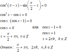 Cos^2(П-x)-sin(П/2-x)=0