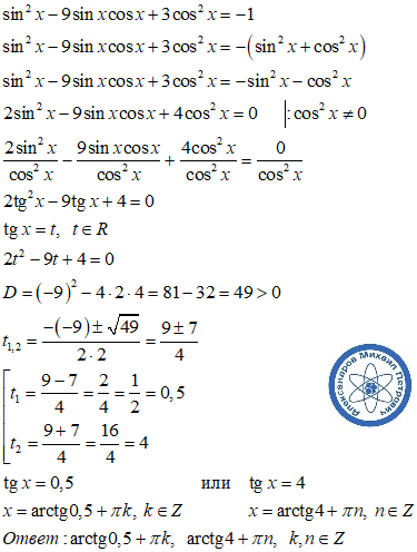 Sin^2x - 9sinx cosx+ 3 cos^2x = -1