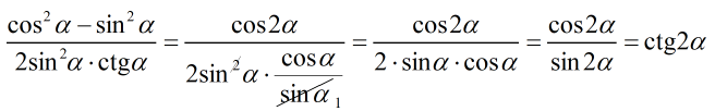 Докажите тождество: cos^2ą - sin^2ą / 2sin^2ą × ctgą = tg2ą