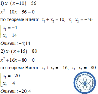 Решите уравнение: X·(X-10)=56 X·(X+16)=80