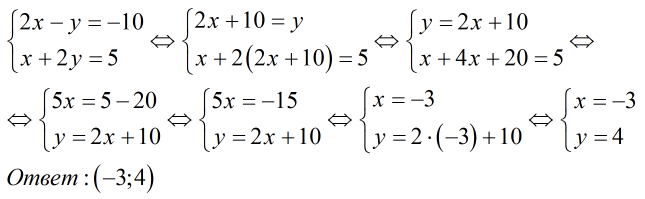 Решите систему уравнений 2х-у=-10 х+2у=5