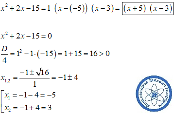 Разложите квадратный трехчлен на множители х^2+2x-15