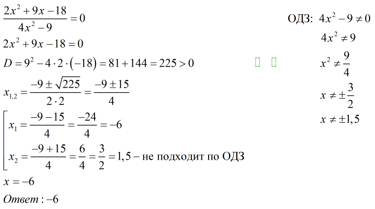 1.Найдите радиус круга,описанного вокруг правильного треугольника со стороной 9√3 2.решительно уравнение: 2х²+9х-18 ————— =0 4х²-9