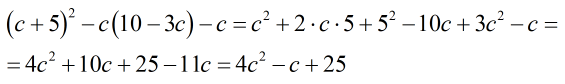 Упростить выражение: (с+5)^2-с(10-3с) -с решением или просто ответ!
