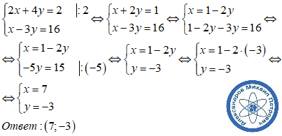 Решите систему уравнений 2х +4у =2 х-3у=16