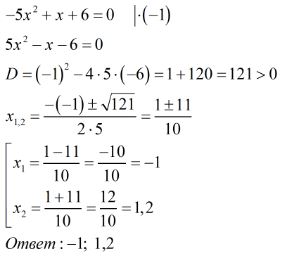 -5x²+х+6=0 решите квадратное уравнение....