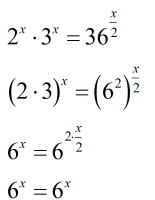 2 в степени x умножить на 3 в степени Икс равняется 36 степени Икс на 2