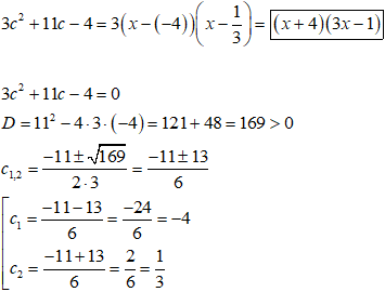 3с в квадрате +11с-4=( разложить на множители) 3(х-?)(х-?)