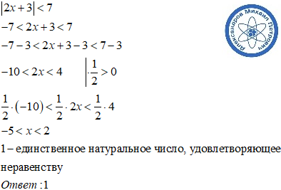 1) Найдите наибольшее натуральное число удовлетворяющее ее неравенство | 2x+3|<7