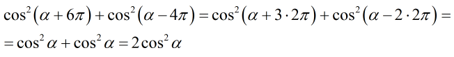 Упростить cos^2(a+6п) +cos^2(a-4п).