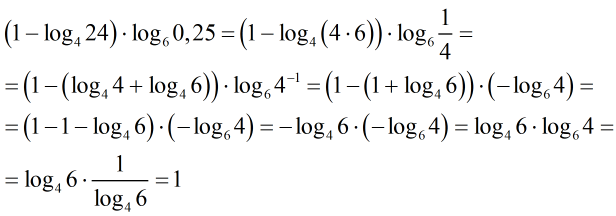 Найдите значение выражения ( 1-log по основанию 4 24) умножиь на log по основанию 6 умн на 0,25