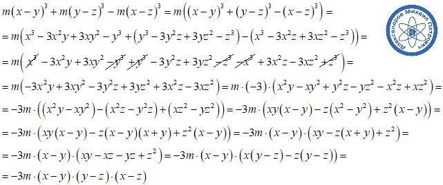 Разложите на множители m(x-y)^3+m(y-z)^3-m(x-z)^3