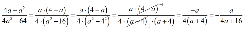 4a-a^2/4a^2-64 сокра...