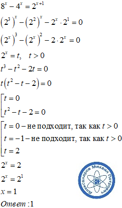 Решите показательное неравенство:8^x-4^x=2^(x+1)