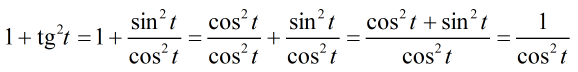 1 + tg²t = 1 + sin²t/cos²t = cos²t + sin²t/cos²t