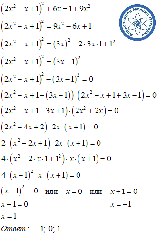 Решите уравнение(2x^2-x+1)^2+6x=1+9x^2