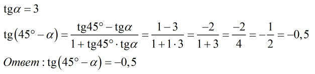 Если tg=3,то найдите значение tg(45-a)