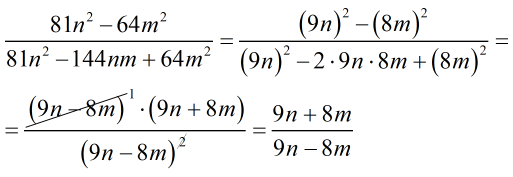 81n²-64m² _________________; надо сокротить 81n²-144nm+64n²