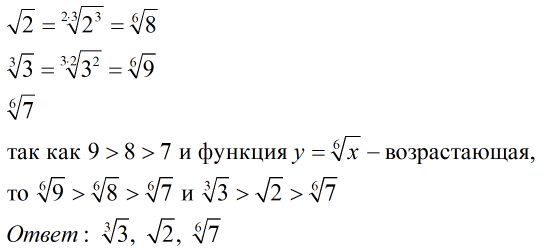 Расположите числа корень из 2, корень 3 степени из 3 и корень 6 степени из 7 в порядке убывания