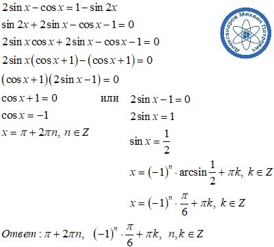 Решить уравнение: 2sinx-cosx=1-sin2x