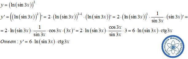 Найти производную сложной функции : y= (ln(sin3x)) ^2