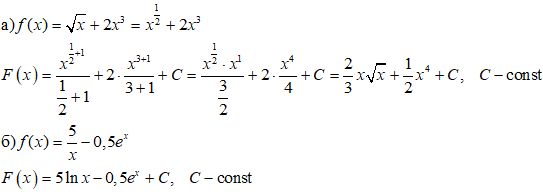 Найдите общий вид первообразных для функций:а)f(x)=√x+2x^3б)f(x)5/x-0,5e^x