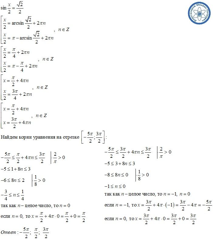 Найти все решения уравнения : sin x/2=sqrt2/2 [-5п/2;3п/2]