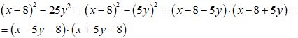 Представьте в виде произведения: (х-8)во 2-25у во 2