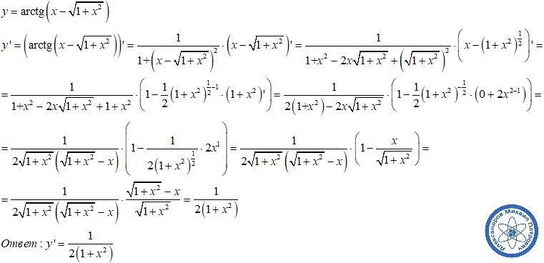 Найти производную от y=arctg(x-sqrt(1+x^2))