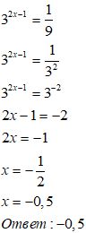 Решить уравнение 3 в степени 2х-1=1/9