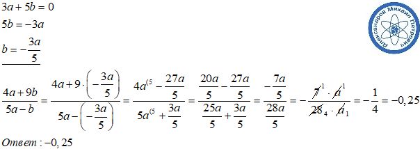 Вычислить значение дроби 4a+9b/5a-b, если 3a+5b=0