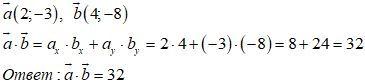 Найдите скалярное произведение вектора а(2;-3) и вектора б(4;-8)