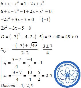 Решить ур-е 6+x-x^2=1-2x+x^2