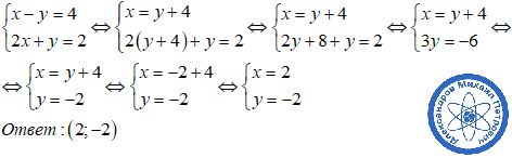 Решите систему уравнений :{x-y=4 , 2x+y=2
